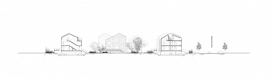Le parti-pris paysager fait référence au territoire viticole dont l’une des figures caractéristiques est l’épaisseur de la nappe végétale. Travaillée en creux dans le parc pour définir des clairières et un jardin humide, la nappe végétale recueillera une partie des eaux de ruissellement du site. Enfin, Le décollement du sol des bâtiments est un atout pour les parkings qui bénéficient d’une relation avec l’extérieur et d’un apport de lumière naturelle.