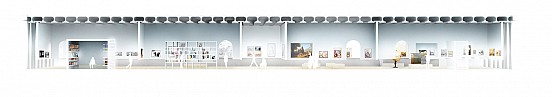 This diversity in uniqueness, proving to be of a nature to promote exchanges between neighbours both near and far, is the fundamental guideline of the planned layout. The guideline is made visible in a suspended, imaginary palace containing a series of rooms, which brings into play a wide range of interactions between the works and the visitors.